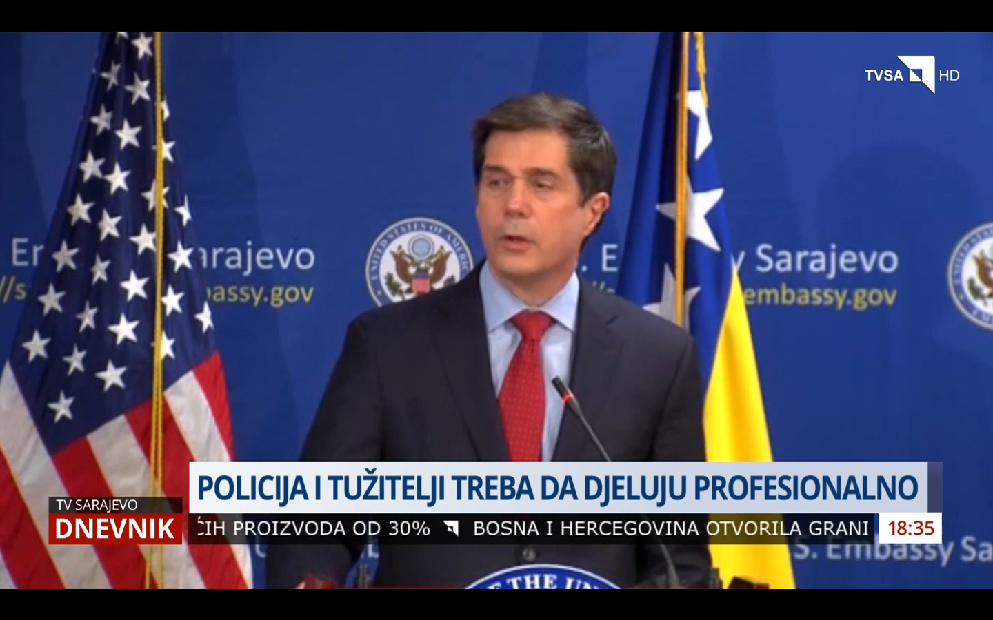Policija i tužitelji odgovorni su da djeluju profesionalno, bez političkog utjecaja, u skladu sa zakonom kako bi istražili navode o korupciji. Istovremeno, neprihvatljive su prijetnje i utjecaj na policiju i tužitelje”, poručuju iz Ambasade.
