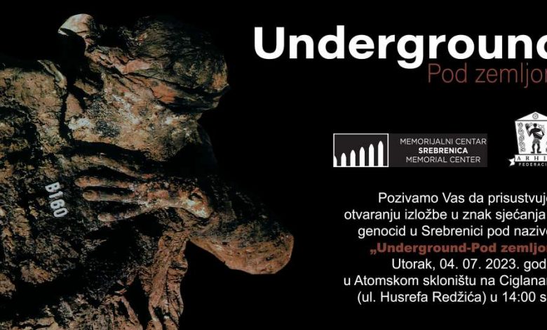 Arhiv Federacije u znak sjećanja na genocid u Srebrenici organizirat će sutra, 4. jula u atomskom skloništu na Ciglanama u Sarajevu izložbu pod nazivom “Underground-Pod zemljom”, koja će pored fotografija biti upotpunjena i javnosti po prvi put prezentirana sa orginalnim ličnim predmetima žrtava, te autentičnim audio i video materijalima.