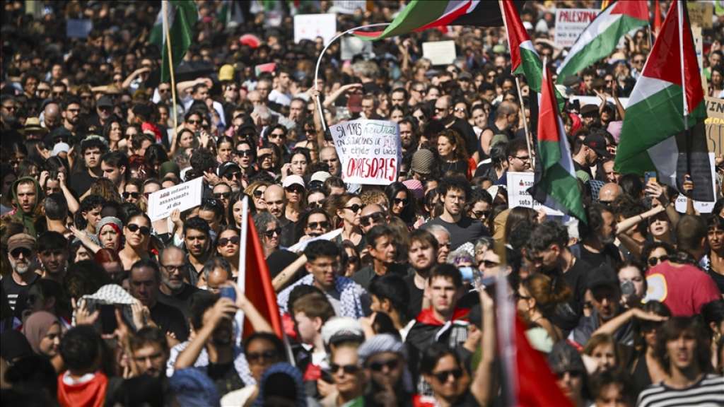 Gradska policija procijenila je odziv na oko 70.000 ljudi, dok su organizatori iz grupe “Prou Complicitat amb Israel” procijenili brojku na oko 300.000, javlja Anadolu.
