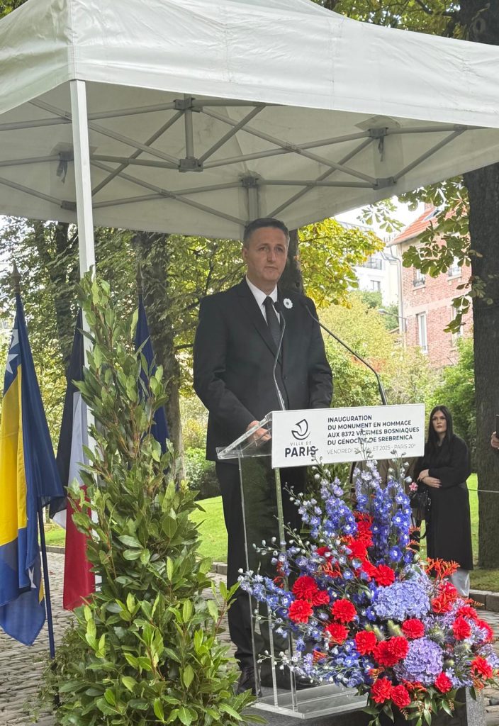 Član Predsjedništva BiH dr. Denis Bećirović otvorio je, zajedno s gradonačenicom Pariza Anne Hidalgo, Spomenik žrtvama genocida u Srebrenici, koji je postavljen na groblju Père Lachaise u Parizu.