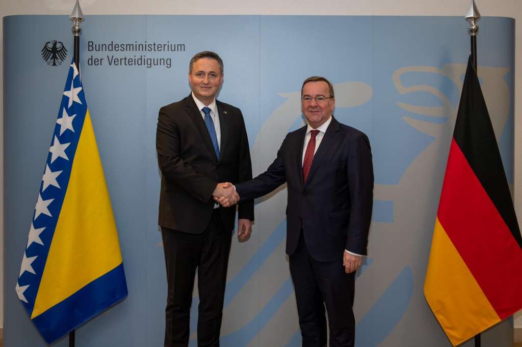 U tom smislu, Bećirović je zahvalio Pistoriusu za konkretnu pomoć Njemačke koja se odnosi na nabavku vojne opreme, uniformi, kao i inicijativi podrške uređenju objekata i infrastrukture na lokacijama Oružanih snaga BiH.