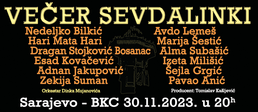Najljepše sevdalinke izvest će Nedeljko Bilkić, Hari Mata Hari, Dragan Stojkovića Bosanac…