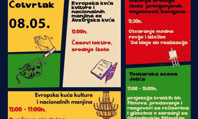 U okviru manifestacije Dani Općine Centar, u četvrtak, 8. maja 2025. godine, građani će imati priliku uživati u raznovrsnom kulturnom i umjetničkom programu koji uključuje književnost, modu, film i muziku. Program se održava na nekoliko lokacija u Sarajevu, a sadržaji su besplatni i otvoreni za sve zainteresovane. Sutra se ujedno obilježava i Dan mladih Općine Centar.
