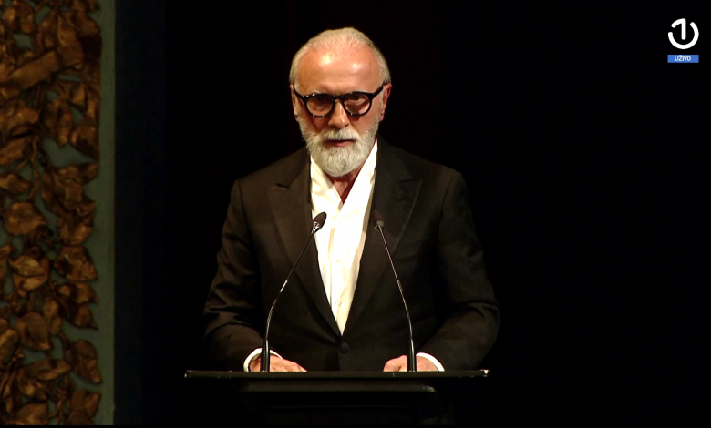 Dino Merlin, muzička zvijezda i dugogodišnji prijatelj i saradnik obratio se na komemoraciji u Narodnom pozorištu.