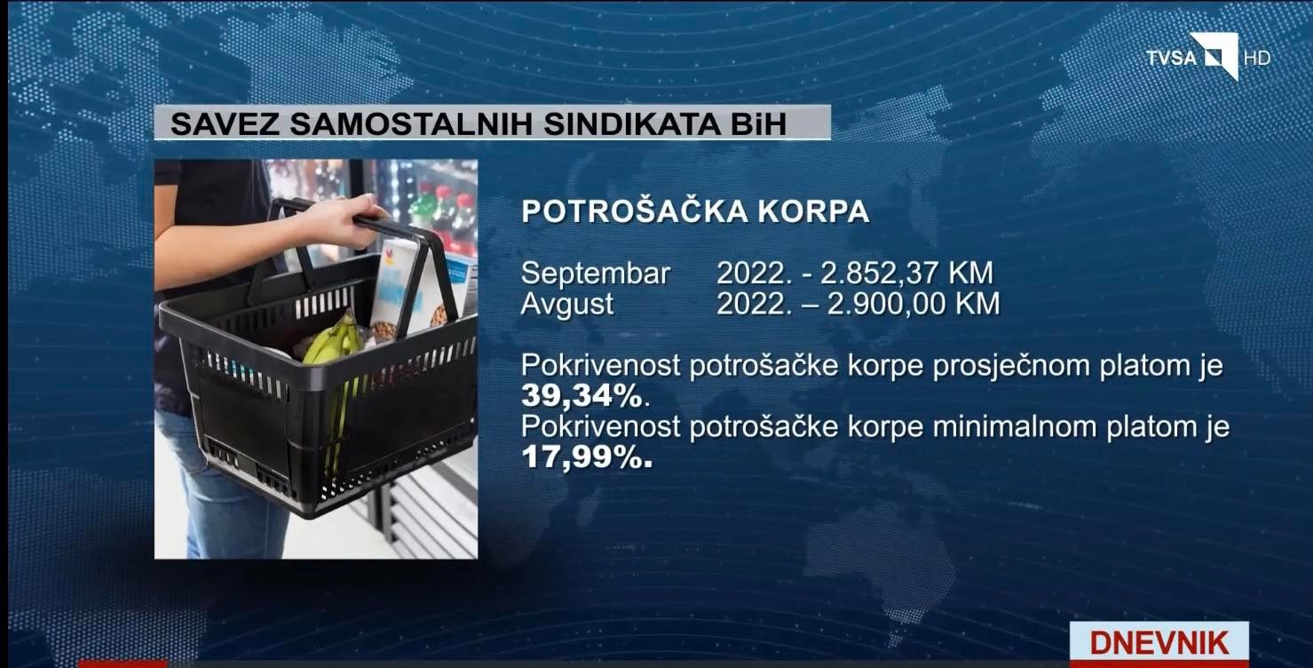Prosječna plaća u FBiH ne može pokriti ni pola sindikalne potrošačke korpe koja za septembar iznosi 2.852 marke.