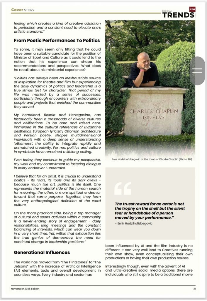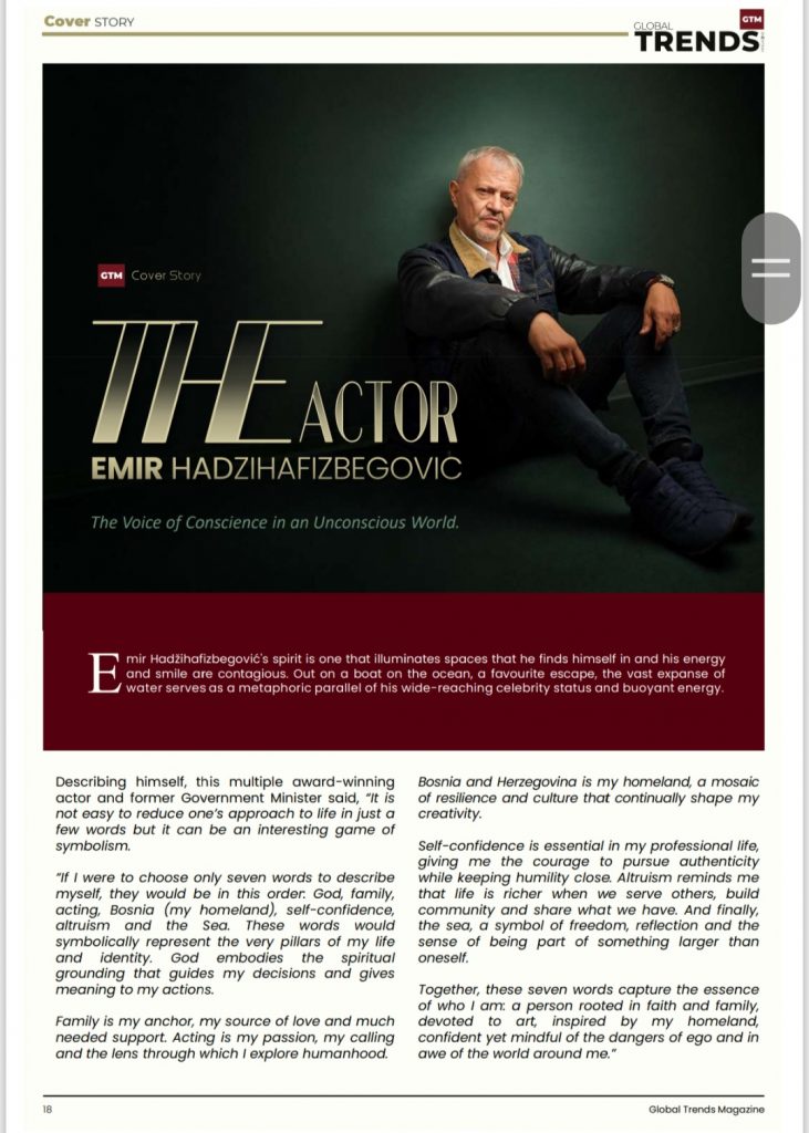 Americki magazin “TRENDS” objavio intervju sa prvakom drame Kamernog teatra 55, Emirom Hadžihafizbegovićem, na 10 strana, saopćeno je iz Kamernog.