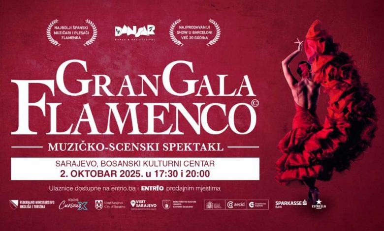 “Gran Gala Flamenco” bit će izveden 2. oktobra u dva termina – u 17.30 i 20.00 sati. Ulaznice za večernji termin rasprodane su u rekordnom roku, zbog čega su umjetnici odlučili nastupiti u dodatnom terminu. Preostao je vrlo ograničen broj ulaznica za nastup u 17.30, koje se mogu kupiti online na platformi entrio.ba, te na biletarnici BKC-a, platou Centra Skenderija i kod drugih Entrio partnera širom Bosne i Hercegovine.