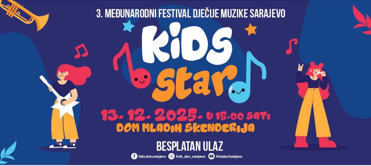 Treći međunarodni festival dječije muzike Sarajevo „Kids Star“ bit će održan 13. decembra u Domu mladih Skenderija, u orgaizaciji Udruženja za očuvanje i razvoj umjetnosti „Artista“. Na pozornici će 20 izvođača iz BiH, Hrvatske, Srbije, Crne Gore, Slovenije i Ukrajine u kategorijama: Male i Mlade zvijezde, pokazati svoj talenat, energiju i ljubav prema muzici.