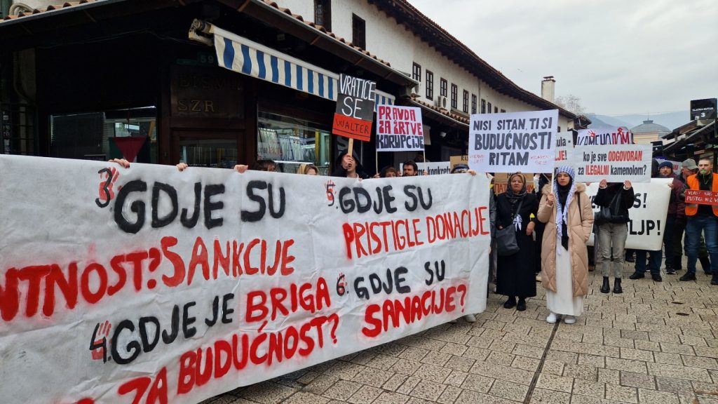 Okupljeni na ovim protestima pozivaju na odgovornost nadležnih za sve ono što se desilo kao i na konkretne poteze buduću da se za sporni kamenolom iznad Donje Jablanice i dalje vode samo predistražne radnje.