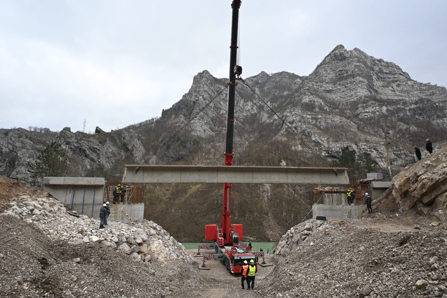- Na gradilište je dopremljeno šest betonskih greda koje se trenutno ugrađuju na pripremljenu konstrukciju. Nakon toga slijedi postavljanje betonske ploče debljine 25 cm, hidroizolacija i nasip. Paralelno, završeni su radovi i na lokalitetu Lamb, koji je pretrpio značajna oštećenja tokom nedavnih poplava. Na tom dijelu pruge radnici ŽFBiH već su postavili gornji stroj pruge, čime je taj lokalitet kompletno završen. Bez završetka tog dijela ne bi se moglo pristupiti završnim fazama radova na Komadinovom Vrelu- rekao je Alenko Topuz, inžinjer geodezije iz kompanije Cengiz.
