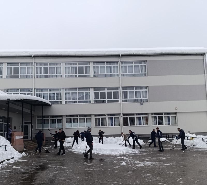 Iako je u toku zimski raspust i učenici ne pohađaju nastavu, uposlenici osnovnih i srednjih škola svakodnevno su prisutni u objektima i aktivno rade na uklanjanju snijega i leda. Provodi se čišćenje prilaza objektima, dvorišta, stepeništa i komunikacijskih površina, kao i uklanjanje snijega i ledenica s krovova, gdje god je to potrebno i moguće, u skladu s važećim propisima i preporukama nadležnih službi. Ovakvo postupanje predstavlja ustaljenu praksu u zimskim i vanrednim uslovima.