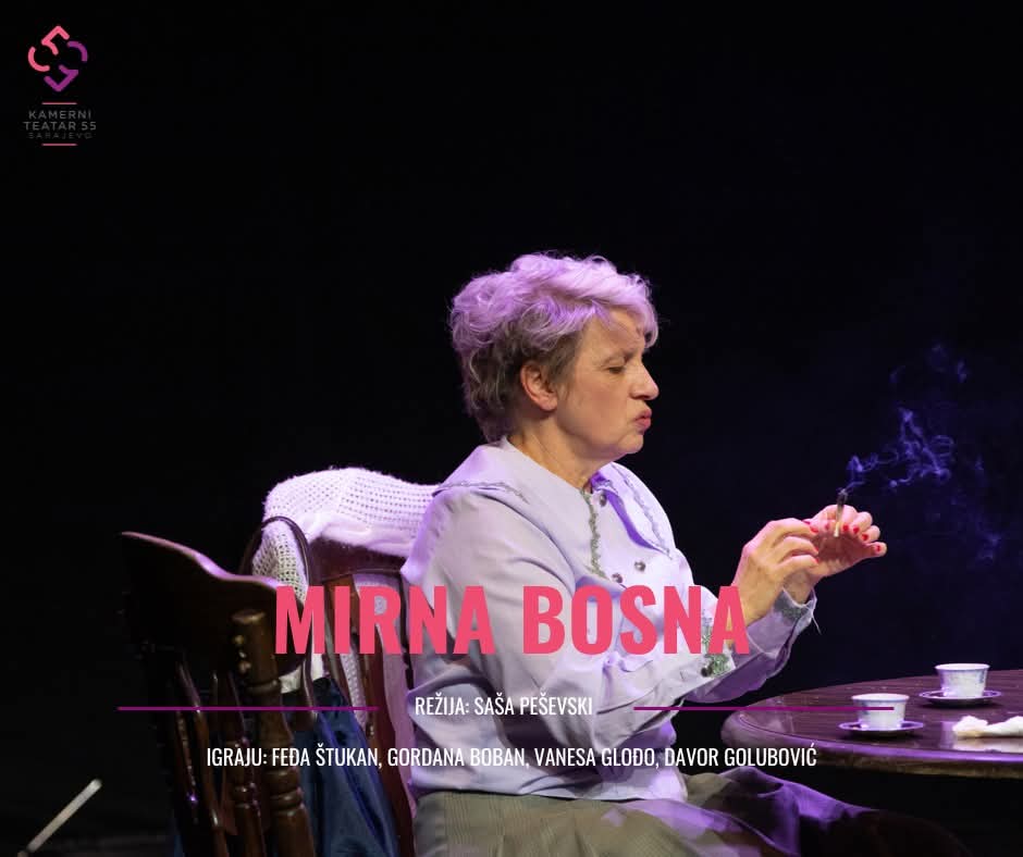 Kamerni teatar 55 s ponosom najavljuje gostovanje predstave “Mirna Bosna” rađene prema tekstu autora Borisa Lalića, a u režiji Saše Peševskog u Portorožu.