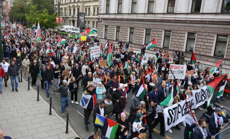 Protest “Bosna i Hercegovina za slobodnu Palestinu” održava se u Sarajevu u organizaciji neformalne grupe građana. Okupljanje je počelo u 13 sati ispred Spomenika djeci opkoljenog Sarajeva, a šetnja je nastavljena prema parku između Historijskog i Zemaljskog muzeja. Nakon čitanja zahtjeva organizatora, održava se umjetničko-kulturni program u kojem učestvuju Larisa Musić i Irma Alimanović, dok će manifestacija biti zaključena izvođenjem antifašističke pjesme “Bella Ciao” u izvedbi hora Chorus Cadenza.