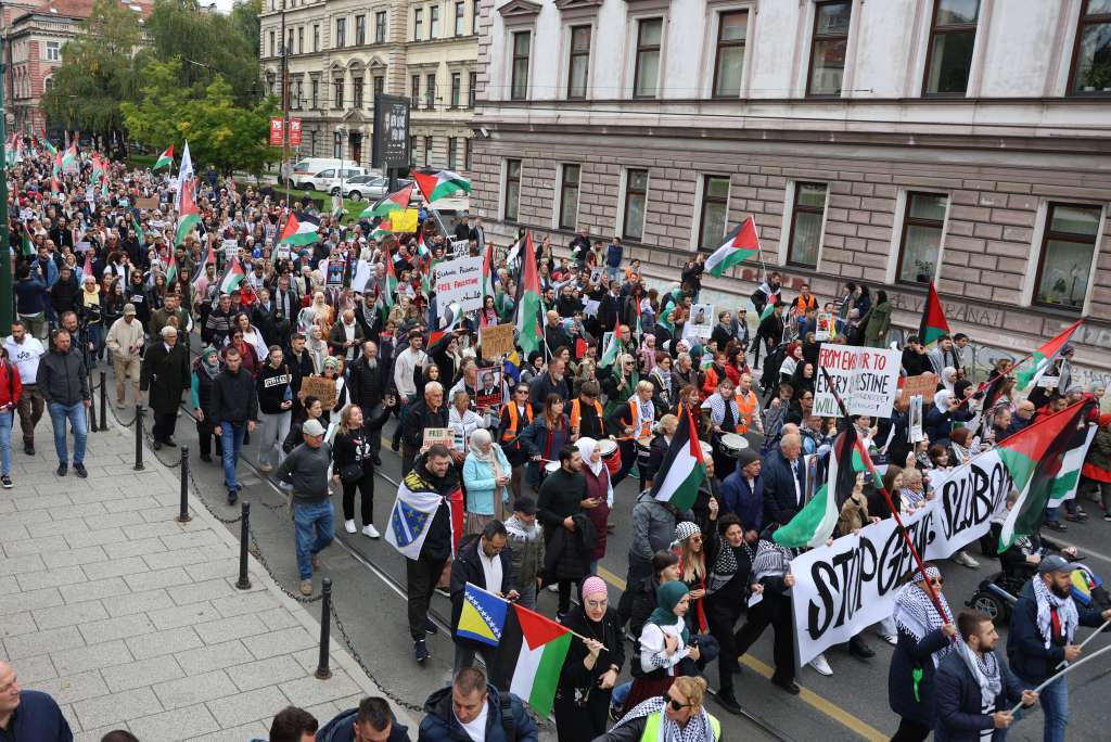 Protest “Bosna i Hercegovina za slobodnu Palestinu” održava se u Sarajevu u organizaciji neformalne grupe građana. Okupljanje je počelo u 13 sati ispred Spomenika djeci opkoljenog Sarajeva, a šetnja je nastavljena prema parku između Historijskog i Zemaljskog muzeja. Nakon čitanja zahtjeva organizatora, održava se umjetničko-kulturni program u kojem učestvuju Larisa Musić i Irma Alimanović, dok će manifestacija biti zaključena izvođenjem antifašističke pjesme “Bella Ciao” u izvedbi hora Chorus Cadenza.