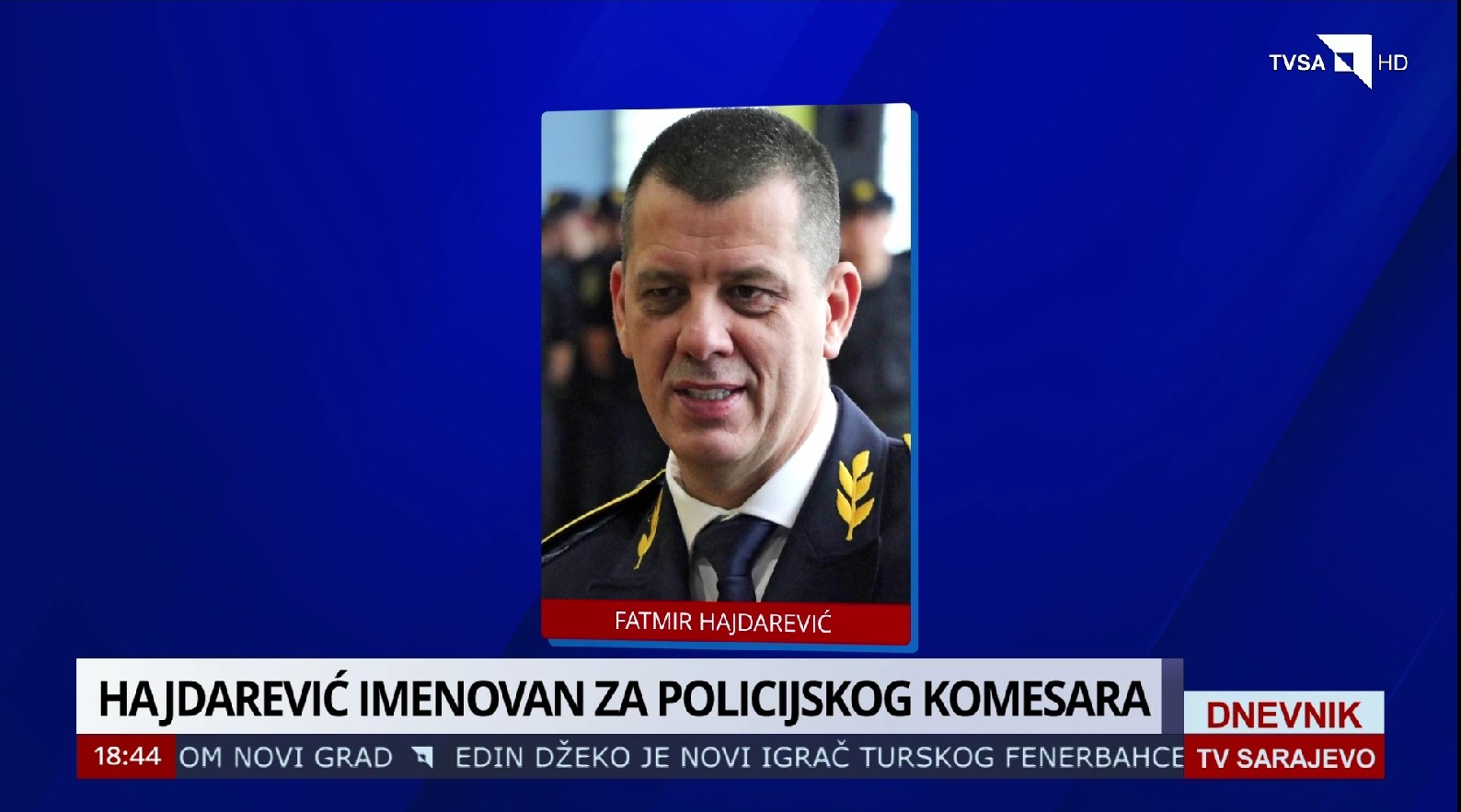 Vlada Kantona Sarajevo donijela je Odluku o imenovanju Fatmira Hajdarevića za policijskog komesara u Ministarstvu unutrašnjih poslova KS, kome se dodjeljuje čin Generalnog inspektora policije.