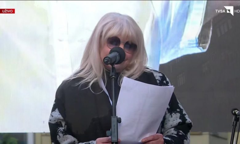 Na okupljanju ispred Vječne vatre, prisutnima se obratila i bh. diva sevdalinke i narodne muzike Hanka Paldum.