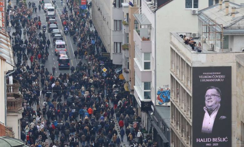 – Hiljade ljudi ispratilo je Halida Bešlića, od Gazi-Husrev-begove džamije u Sarajevu gdje mu je klanjana dženaza, pa centralnom gradskom ulicom Ferhadija, do Vječne vatre gdje su se automobilu s tabutom pridružila ostala auta u povorci prema gradskom mezarju Bare.