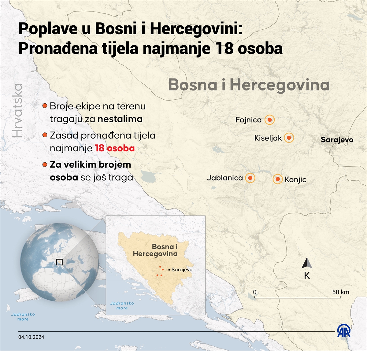 INFOGRAFIKA: Najmanje 18 smrtno stradalih osoba uslijed poplava i klizišta u BiH Murisa Zuko Prije 1 godina Najmanje 18 osoba tokom noći i dana smrtno je stradalo uslijed katastrofalnih poplava i klizišta u Bosni i Hercegovini. Related Articles POLIS / Služba za zapošljavanje KS: “Najtraženija su majstorska zanimanja” (video) Vlada KS usvojila Nacrt zakona o legalizaciji bespravno izgrađenih objekata Nerin Dizdar: “Vjerujem da će doći do povećanja minimalca u 2026. godini” (video) Bićo i Hrnjić o problemima poljoprivrednika u FBiH: “29 poljoprivrednika do sada nije dostavilo fiskalne račune u Ministarstvo” (video)