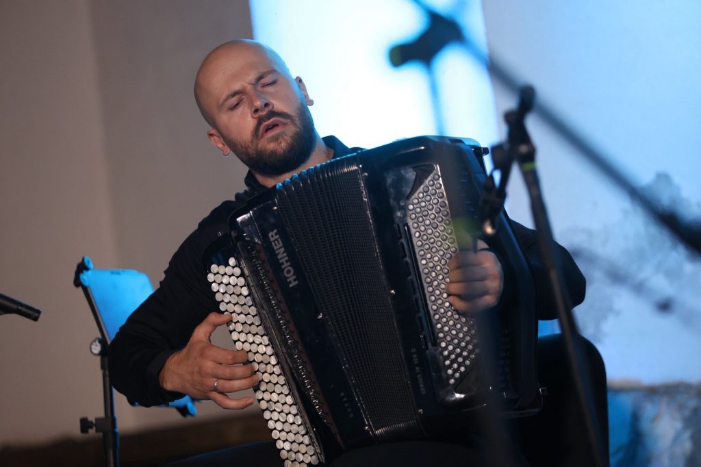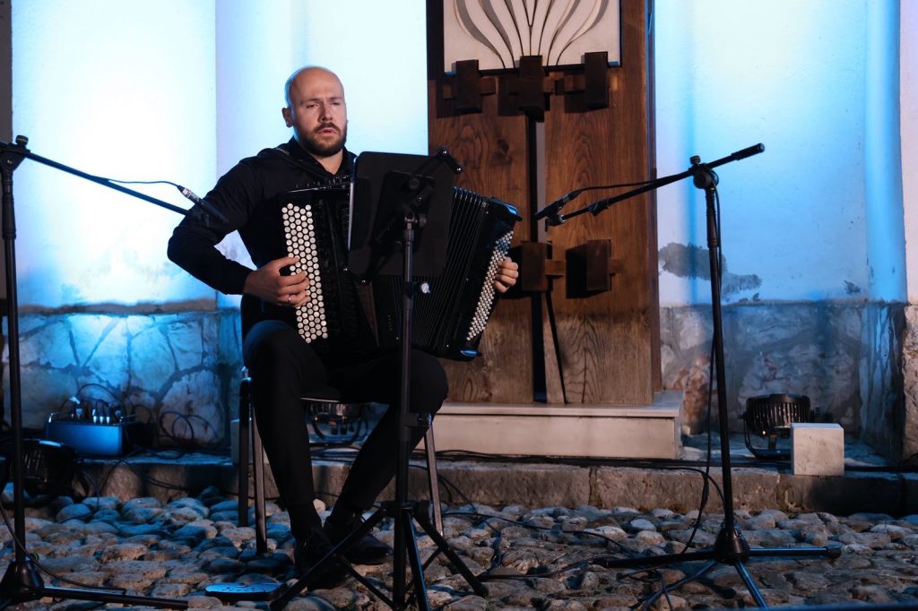 U prelijepom ambijentu Velike avlije Laure Papo Bohorete (Muzej Jevreja BiH), sinoć je izveden koncert na harmonici Azmira Halilovića, uz pratnju Armina Smrike na klarinetu.
