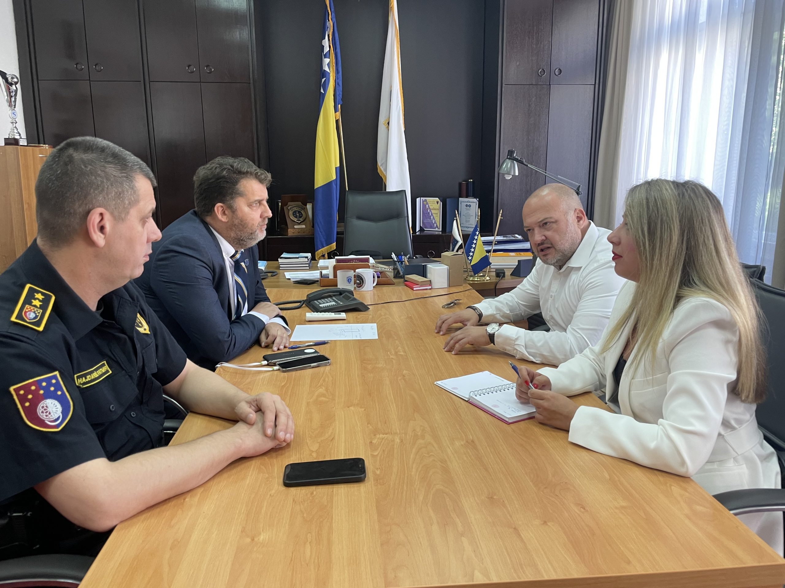 Ministar unutrašnjih poslova Admir Katica i policijski komesar Fatmir Hajdarević održali su danas sastanak s direktorom Centra za edukaciju sudija i tužilaca Arbenom Murtezićem zbog organizacije okruglog stola na temu ujednačavanja praksi oduzimanja vozila.