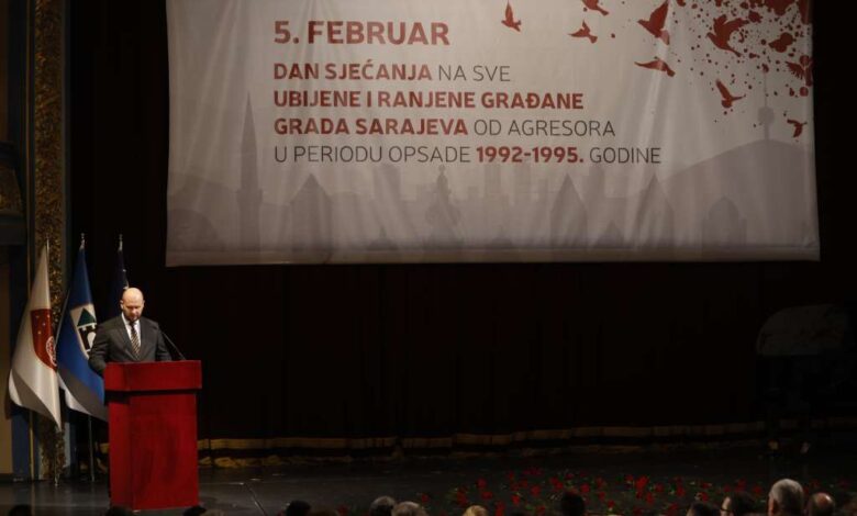 U prisustvu brojnih zvaničnika, građana i učenika sarajevskih gimnazija, danas je održana zajednička sjednica Skupštine Kantona Sarajevo, Gradskog vijeća i općinskih vijeća povodom Dana sjećanja na ubijene i ranjene građane Sarajeva tokom opsade i 32. godišnjice masakra na pijaci Markale.