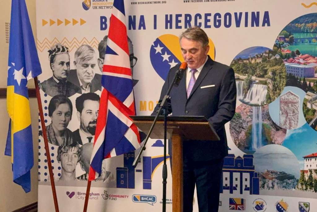 Predsjedavajući Predsjedništva Bosne i Hercegovine Željko Komšić održao je danas govor u Domu parlamenta Ujedinjenog Kraljevstva, na prijemu povodom obilježavanja Dana državnosti Bosne i Hercegovine.