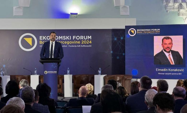 Ministar vanjskih poslova Bosne i Hercegovine Elmedin Konaković učestvovao je danas na 8. Ekonomskom forumu 2024 pod nazivom “SDGs, EU, WB Reformska agenda 2030 – od konfrontacije do kooperacije”, koji je organizirao Ekonomski fakultet Univerziteta u Sarajevu.