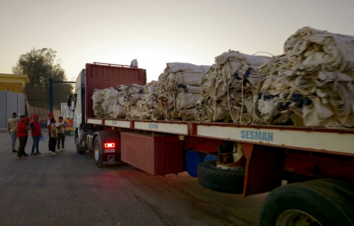 Kamioni humanitarne pomoći prelaze iz Egipta u Gazu kroz granični prijelaz Rafah pod nadzorom osoblja Egipatskog Crvenog polumjeseca 20. augusta 2025. godine, dok se operacije pomoći nastavljaju usred stalnih ograničenja i hitnih humanitarnih potreba u Pojasu Gaze.