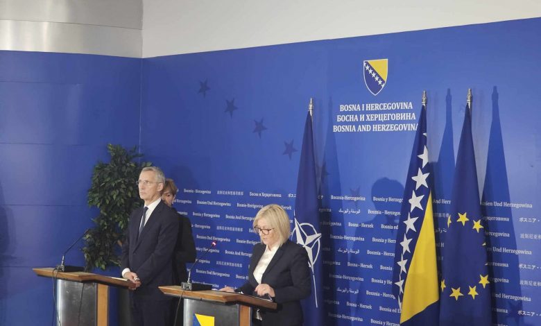 Predsjedavajuća vijeća ministara BiH Borjana Krišto održala i generalni sekretar NATO-a Jens Stoltenberg obratili su se danas nakon sastanka u Sarajevu.