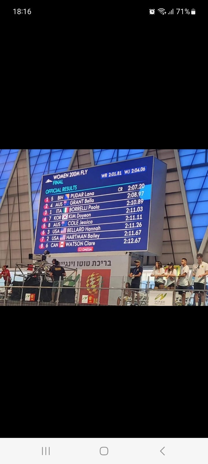 Naša fantastična plivačica ostavila je konkurenciju daleko iza sebe. Druga je bila Bella Grant iz Australije s vremenom 2:08.97, dok je treća Italijanka Paola Borrelli s vremenom 2:10.89.