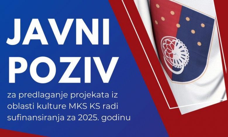 Ministarstvo kulture i sporta Kantona Sarajevo poziva sve umjetnike – pojedince i kulturne stvaraoce, udruženja, fondacije, te pravna lica registrovana za djelatnosti kulture i umjetnosti da dostave prijedloge svojih projekata na Javni poziv za sufinansiranje projekata iz oblasti kulture iz sredstava Ministarstva za 2025. godinu.