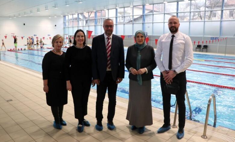 Ministrica za odgoj i obrazovanje Kantona Sarajevo Naida Hota-Muminović, načelnica Općine Novo Sarajevo Benjamina Karić te direktorica Instituta za razvoj preduniverzitetskog obrazovanja KS Senada Salihović posjetile su danas Fakultet sporta i tjelesnog odgoja (FASTO)Univerziteta u Sarajevu, gdje se za učenike četvrtih razreda osnovnih škola s područja Novog Sarajeva trenutno realizira program Škola plivanja.