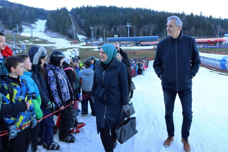 Ministrica za odgoj i obrazovanje Naida Hota-Muminović, direktor KJKP „ZOI ’84“ Admir Bukva i direktorica Instituta za razvoj preduniverzitetskog obrazovanja KS Senada Salihović posjetili su danas na Bjelašnici sarajevske učenike koji u okviru “Škole skijanja” uče osnove ovog zimskog sporta.