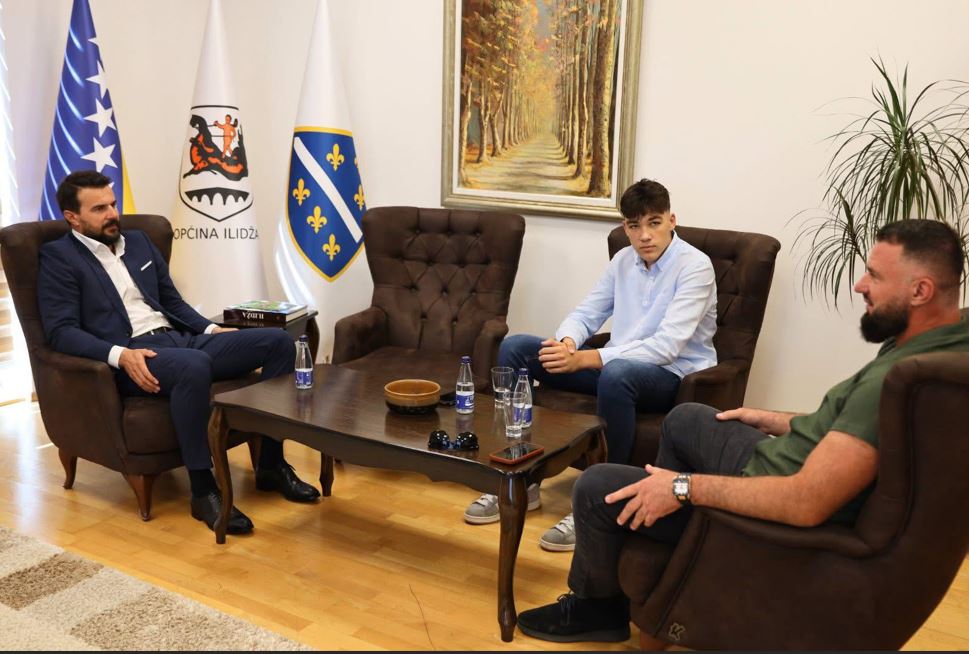 Načelnik Općine Ilidža, Nermin Muzur, ugostio je mladog i perspektivnog sportistu Rijada Jukića, člana Sportskog kluba „Arena“ zajedno s njegovim trenerom Almirom Kapićem.