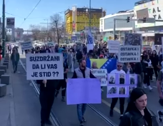 Ispred Zemaljskog muzeja građana je mnogo manje nego na ranijim protestima. Protestanti i dalje uzvikuju “Hoćemo pravdu”, a među okupljenima je prisutan i određen broj roditelja, porodica koje su tragično izgubili djecu.