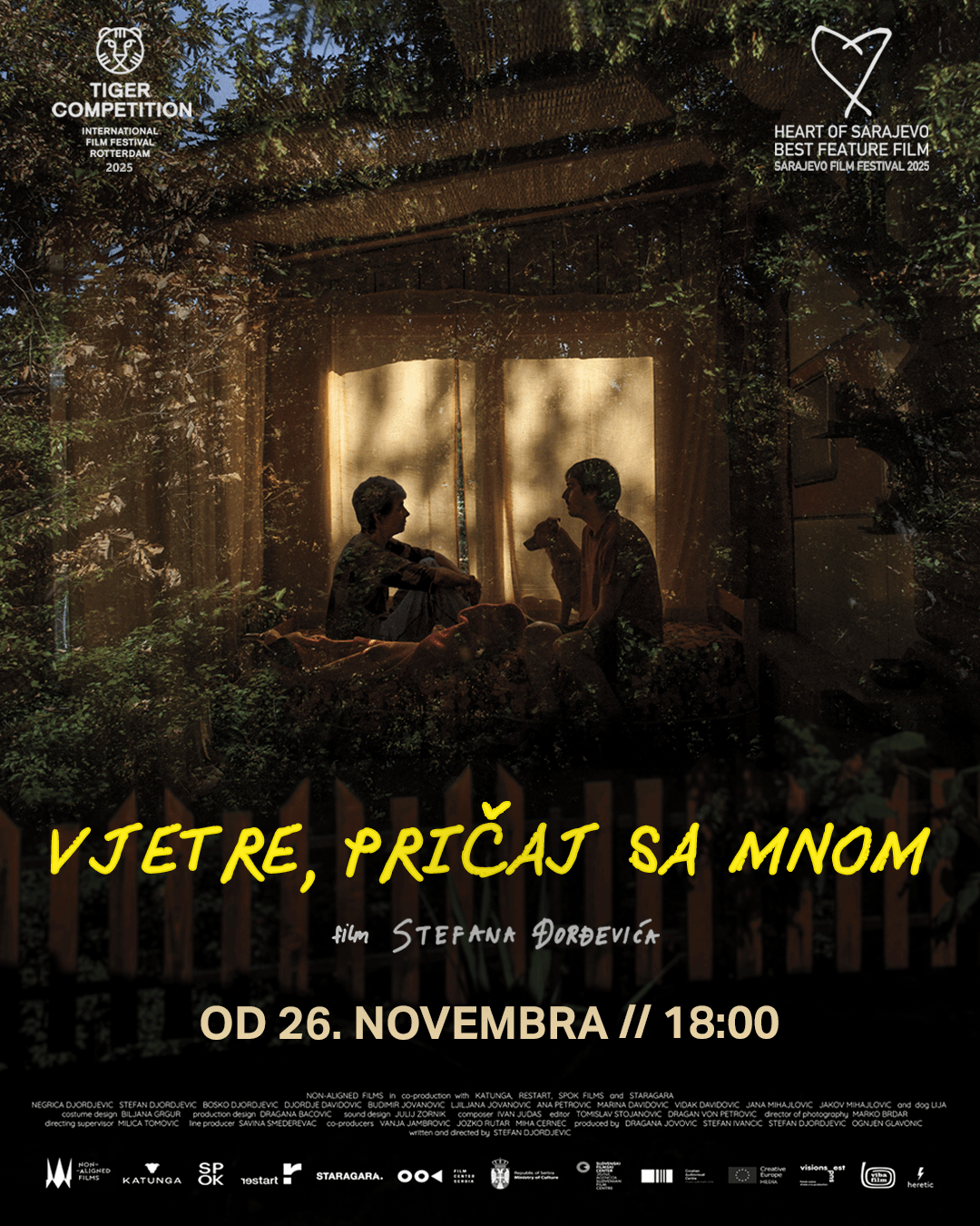 Pobjednik 31. Sarajevo Film Festivala, dobitnik Srca Sarajeva za najbolji igrani film, „Vjetre, pričaj sa mnom“ Stefana Đorđevića, dolazi na repertoar kina Meeting Point od 26. novembra. Projekcija filma je od 18 sati, a ulaznice su u prodaji.