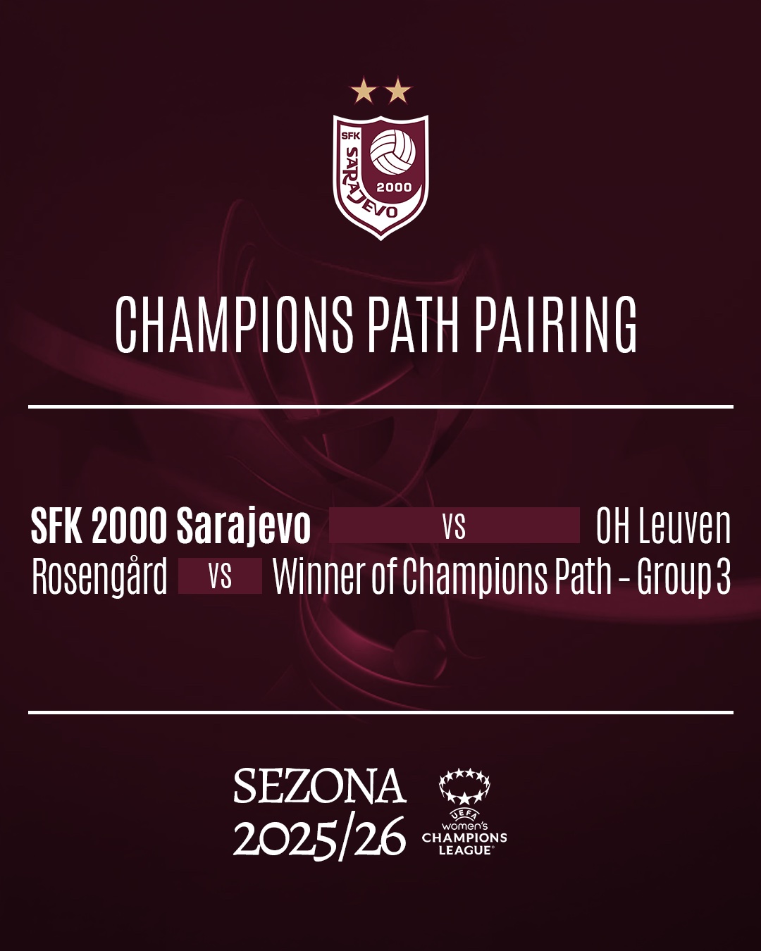 Na žrijebu održanom u sjedištu UEFA-e u Nyonu, klub iz Sarajeva saznao je protivnike u okviru prve runde kvalifikacija – Grupa 3 UEFA Women’s Champions League. U polufinalu mini-turnira, SFK 2000 Sarajevo će odmjeriti snage s belgijskim predstavnikom OH Leuven, dok drugi polufinalni par čine švedski Rosengård i pobjednik iz prve runde Champions Path – Grupa 3.