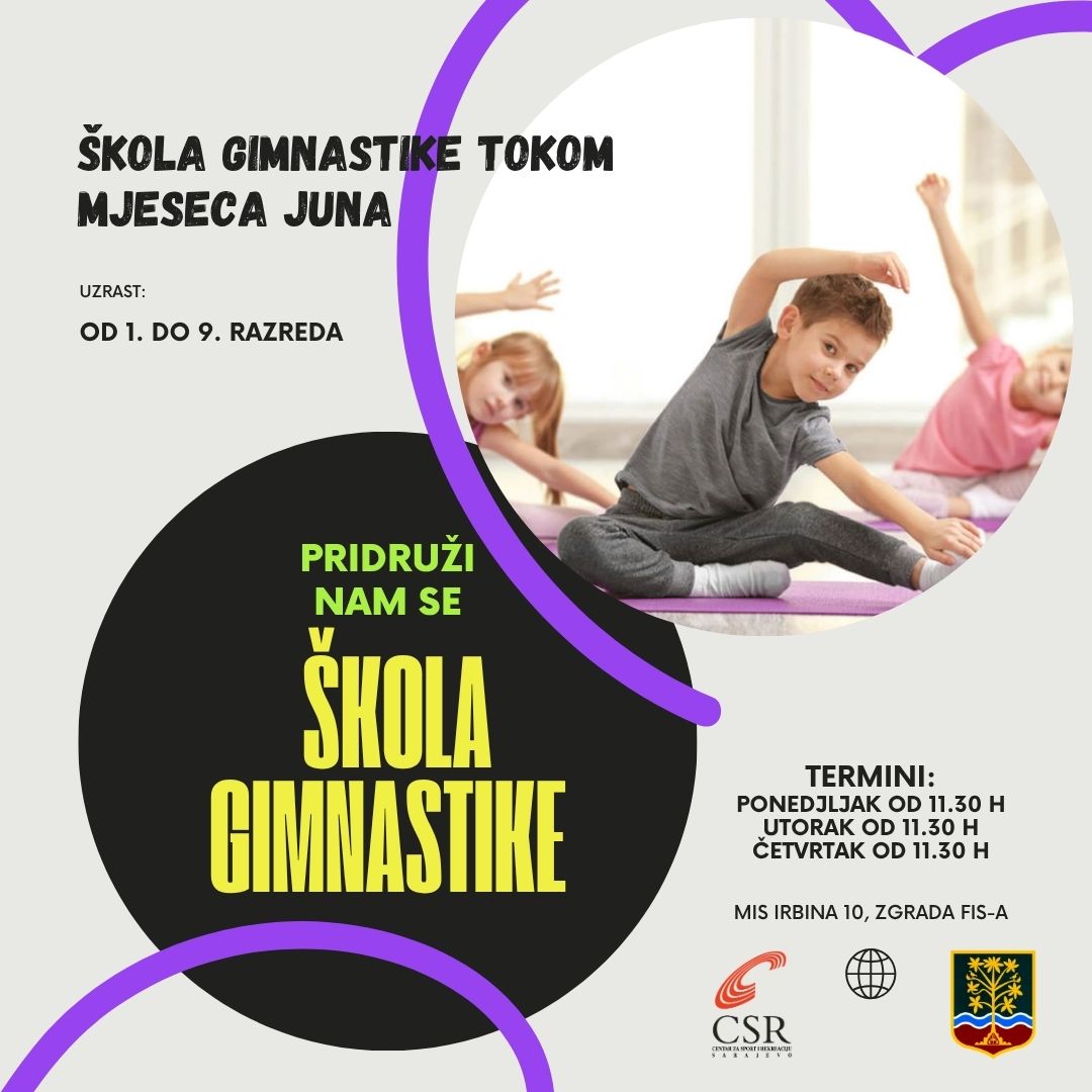 Besplatna škola gimnastike održava se u FIS-u, Mis Irbina 10, a podrazumijeva aktivnosti kao što su motorički poligoni, osnovni gimnastički elementi, rad na spravama, zabavne igre i trampolina.