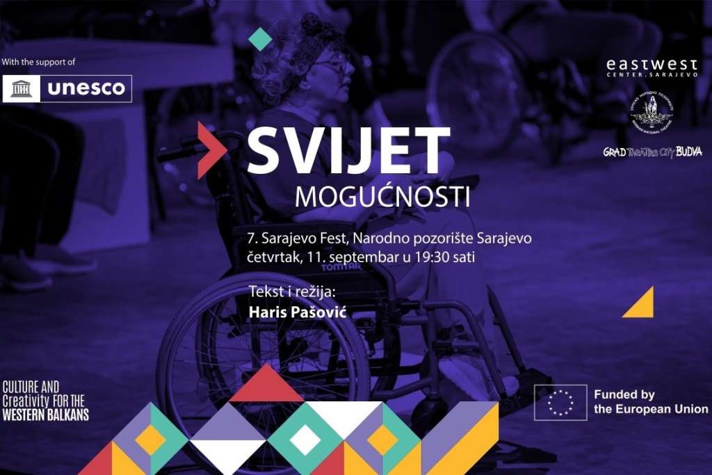 U povodu obilježavanja dvadesete godišnjice East West Centra Sarajevo dramska predstava ‘Svijet mogućnosti’, autora i reditelja Harisa Pašovića, bit će izvedena na sceni Narodnog pozorišta Sarajevo, večeras s početkom u 19.30 sati, u okviru sedmog izdanja Sarajevo Festa.
