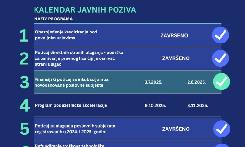 Ministarstvo privrede Kantona Sarajevo objavilo je novi Javni poziv za dostavljanje prijava u svrhu dodjele finansijskog poticaja s inkubacijom za novoosnovane poslovne subjekte. Ovaj program predstavlja stratešku mjeru podrške razvoju poduzetništva, s ciljem jačanja lokalne ekonomije, otvaranja novih radnih mjesta i stvaranja povoljnijeg poslovnog ambijenta za mlade i inovativne ljude u Bosni i Hercegovini.