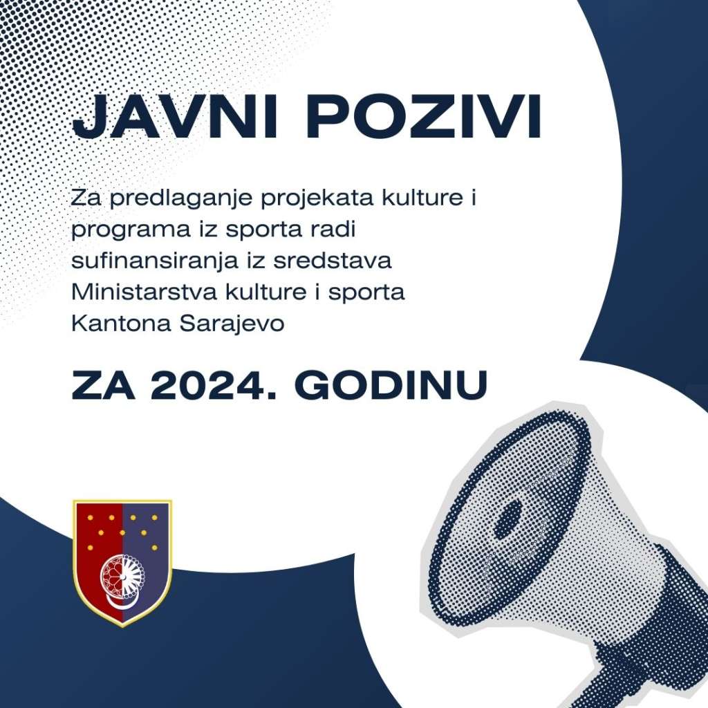 Ministarstvo kulture i sporta Kantona Sarajevo (KS) objavilo je na internet-stranici Javni poziv za predlaganje projekata kulture i Javni poziv za predlaganje programa iz sporta, radi sufinansiranja sredstvima Ministarstva za 2024. godinu.