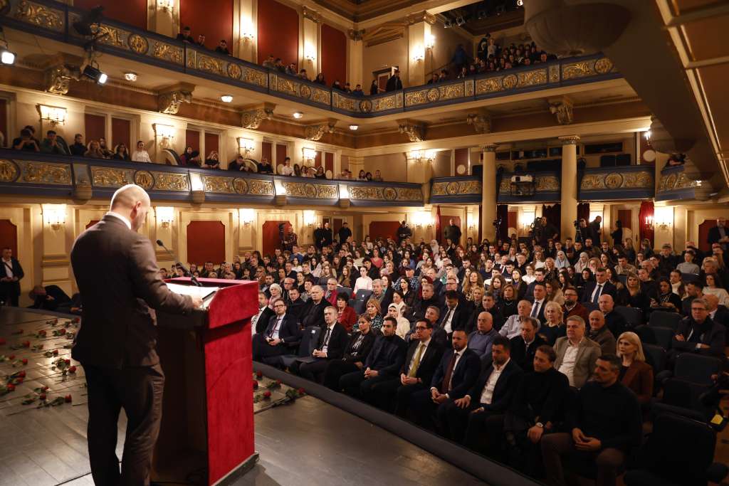 Komemorativnoj sjednici prisustvovali su danas u Narodnom pozorištu i članovi porodica i prijatelji ubijenih tokom agresije na BiH, kao i sarajevski srednjoškolci.