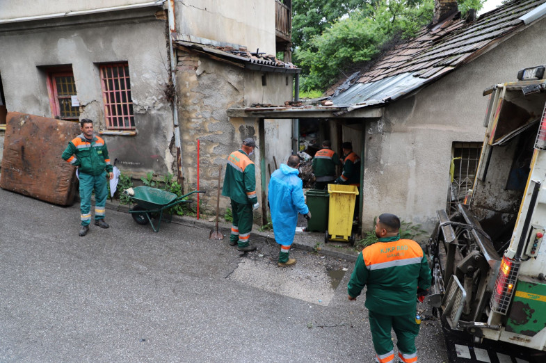 Radnici Kantonalnog javnog komunalnog preduzeća „Rad“ jutros su započeli aktivnosti na čišćenju divlje deponije koja se nalazi unutar ruševnog objekta na adresi Odobašina 44.