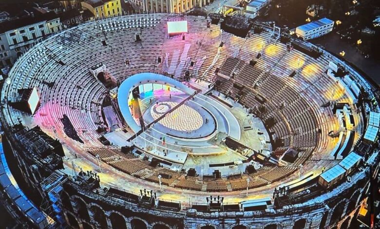 Ceremonija se održava u rimskom amfiteatru na otvorenom, poznatom po održavanju opernih i pop koncerata, u srcu sjevernoitalijanskog grada koji je postao poznat kao mjesto Shakespeareove drame “Romeo i Julija”.