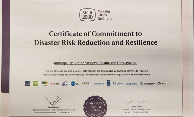 Općina Centar je kroz aktivnosti i koordinaciju sa Službom za civilnu zaštitu kao prva lokalna zajednica u Kantonu Sarajevo pristupila inicijativi (Making Cities Resilient 2030 – Učinimo gradove otpornim), a koju provodi kancelarija Ujedinjenih naroda za smanjenje rizika od katastrofa UNDRR (United Nation Office for Disaster Risk Reduction).