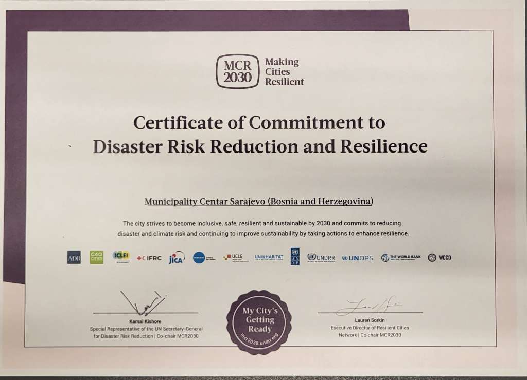 Općina Centar je kroz aktivnosti i koordinaciju sa Službom za civilnu zaštitu kao prva lokalna zajednica u Kantonu Sarajevo pristupila inicijativi (Making Cities Resilient 2030 – Učinimo gradove otpornim), a koju provodi kancelarija Ujedinjenih naroda za smanjenje rizika od katastrofa UNDRR (United Nation Office for Disaster Risk Reduction).