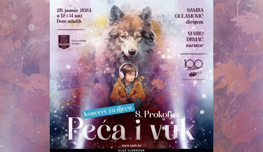 Novu koncertnu sezonu Sarajevska filharmonija otvara sa simfonijskom bajkom Sergeja Prokofjeva „Peća i vuk“, a koncert je namijenjen našim najmlađim sugrađanima.