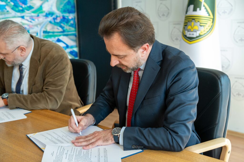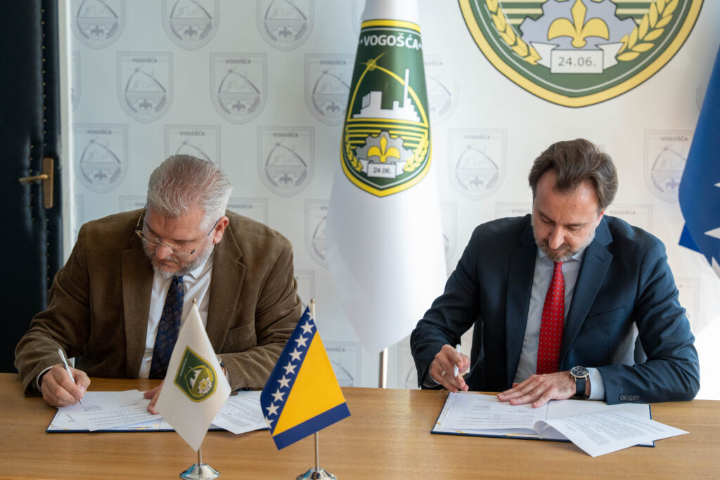 Načelnik Općine Vogošća Migdad Hasanović i direktor KJKP Park Adis Bešlić potpisali su sporazum koji se odnosi na realizaciju projekata uređenja dječijih i sportskih igrališta na području općine Vogošća u 2026. godini.