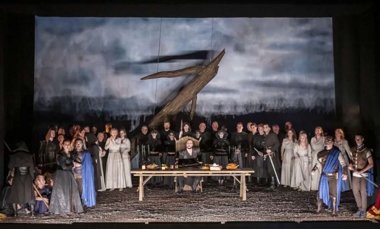 Bošković je odlučio, kako kaže, stvoriti vizualno dojmljiv spektakl koji odražava primitivni svijet ovog djela. Koristio je minimalistički pristup s pažljivo odabranim elementima koji simboliziraju sukob civilizacija. Tea Bašić Erceg na scenu donosi preko stotinu novo sašivenih kostima.