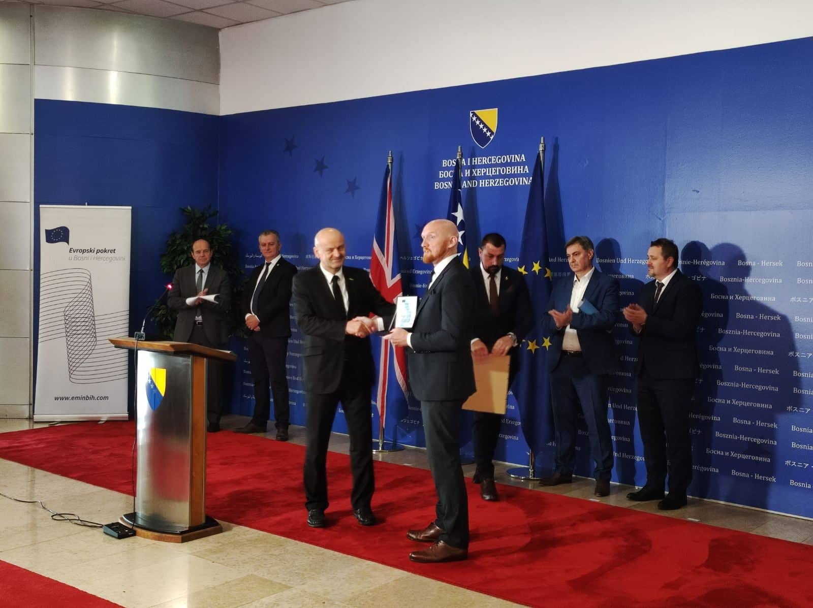 Evropski pokret u BiH uručio Orden naroda, građanki i građana BiH ambasadoru Velike Britanije u BiH Matthewu Fieldu.